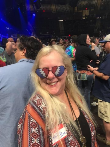I first met Jodi on a Dead Head Facebook Group for fans attending Playing In The Sand 2019. Our real life introduction happened during Fall Fun Run when she handed me a “Hello My Name Is” sticker for Scarlet Begonias. Our friendship solidified during the Covid shutdown, when I asked Jodi for an invite to a weekly cooking group with the Goldfish Lunatics. The goldfish comprised of almost 3 dozen NY/NJ deadheads who had formed a cohesive family unit. Unbeknownst to most of us, despite her ever present smile, Jodi was fighting terminal cancer. Yet, even in the midst of a global pandemic, her generous heart was always forward facing. She was brave and beautiful- I will love and miss Jodi until the end of time. 💜⚡️🦋 #BOP